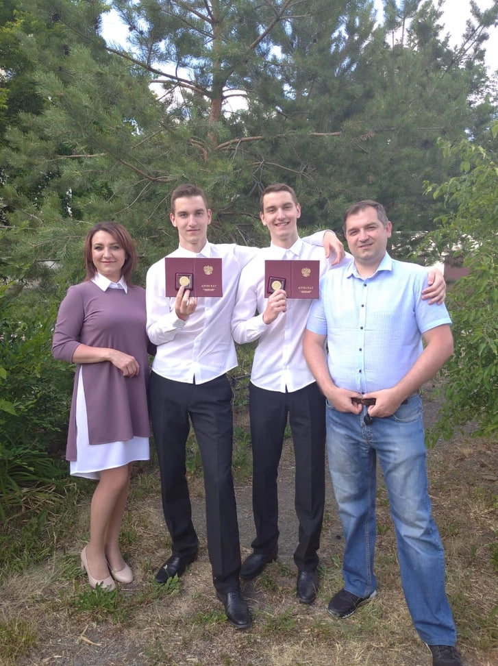 Не лишним будет сказать, что спортсмены окончили школу с красным дипломом, в аттестате одни пятерки! И это несмотря на то, что в выпускном классе пришлось пропускать немало уроков из-за поездок на соревнования. Их успеваемости не могла нарадоваться мама. Не без гордости она разместила фотографии сыновей с их красными дипломами в соцсети, сопроводив их подписью: «Какие же они у меня красавчики! Горжусь своими мальчиками». Друзья и знакомые оставили комментарии: «Какие большие и уже взрослые сыночки! Выше папы и мамы. Хорошей учебы и успехов в будущем»…