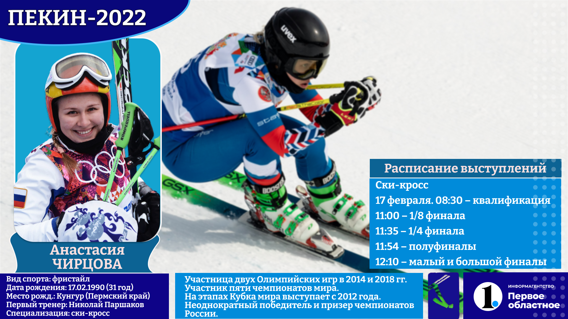 Для Игоря Омелина предстоящая Олимпиада станет второй по счету, для Анастасии Чирцовой — третьей. Оба уже почти с десяток лет выступают за сборную России на этапах Кубка мира. Другими словами, опыта им не занимать. Многое будет зависеть от того, в какой физической форме они подойдут к главным стартам четырехлетия. Кстати, заключительный предолимпийский сбор они прямо сейчас проходят на горнолыжном курорте «Солнечная долина». Хотелось бы верить, что Южный Урал поможет нашей команде успешно подготовиться и выступить в Пекине.