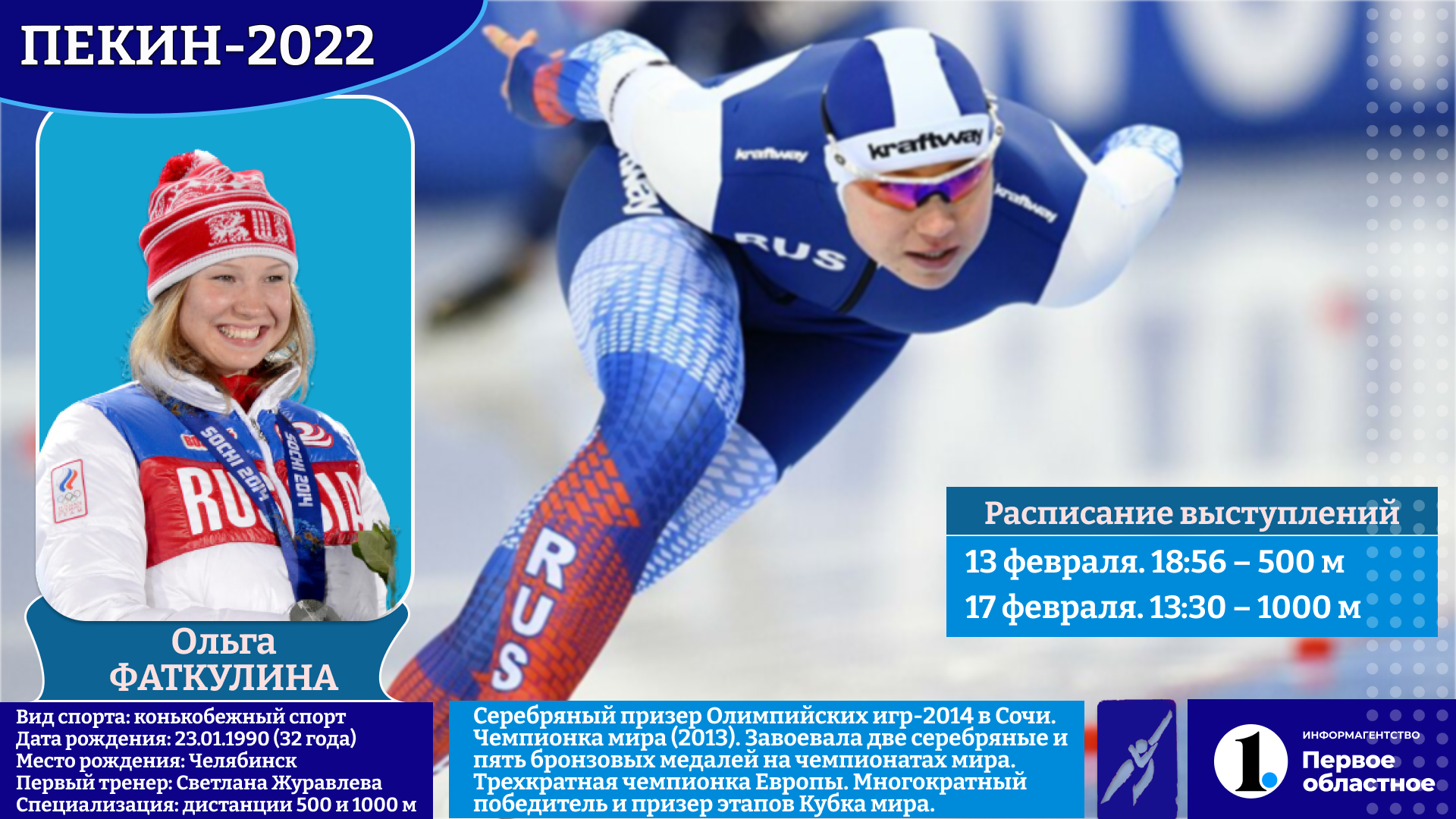 На свою вторую Олимпиаду отправится конькобежка Ольга Фаткулина. Одна из лидеров сборной России среди претендентов на медали. По крайней мере, об этом говорят специалисты. Например, олимпийская чемпионка по конькобежному спорту Светлана Журова, оценивая перспективы наших спортсменок в Пекине, сделала ставку именно на спринтерскую женскую команду.