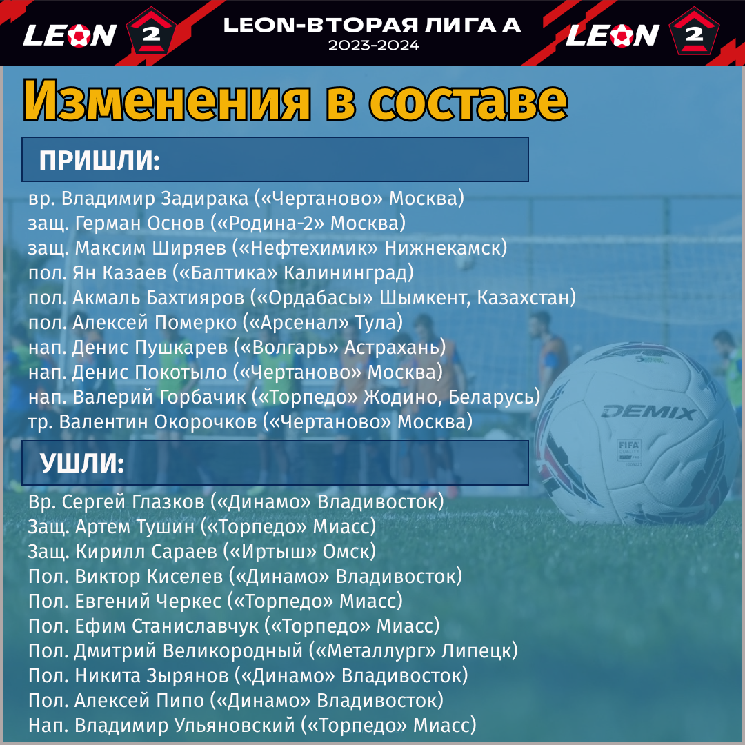 Наверняка будут играть заметную роль в клубе и, возможно, претендовать на попадание в стартовый состав Максим Ширяев, Акмаль Бахтияров, Денис Пушкарев, Денис Покотыло. И это при том, что основной костяк команды был сохранен. В итоге у ФК «Челябинск» набирается по два игрока на каждую позицию.